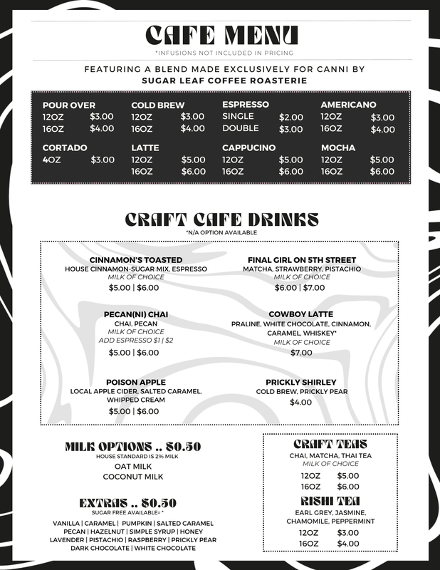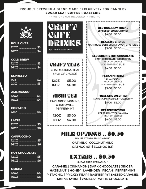Immerse Yourself in Canni's Signature Specialty Drinks, Blending Cannabis, Mushroom, and Adaptogenic Infusions for an Unforgettable Experience.